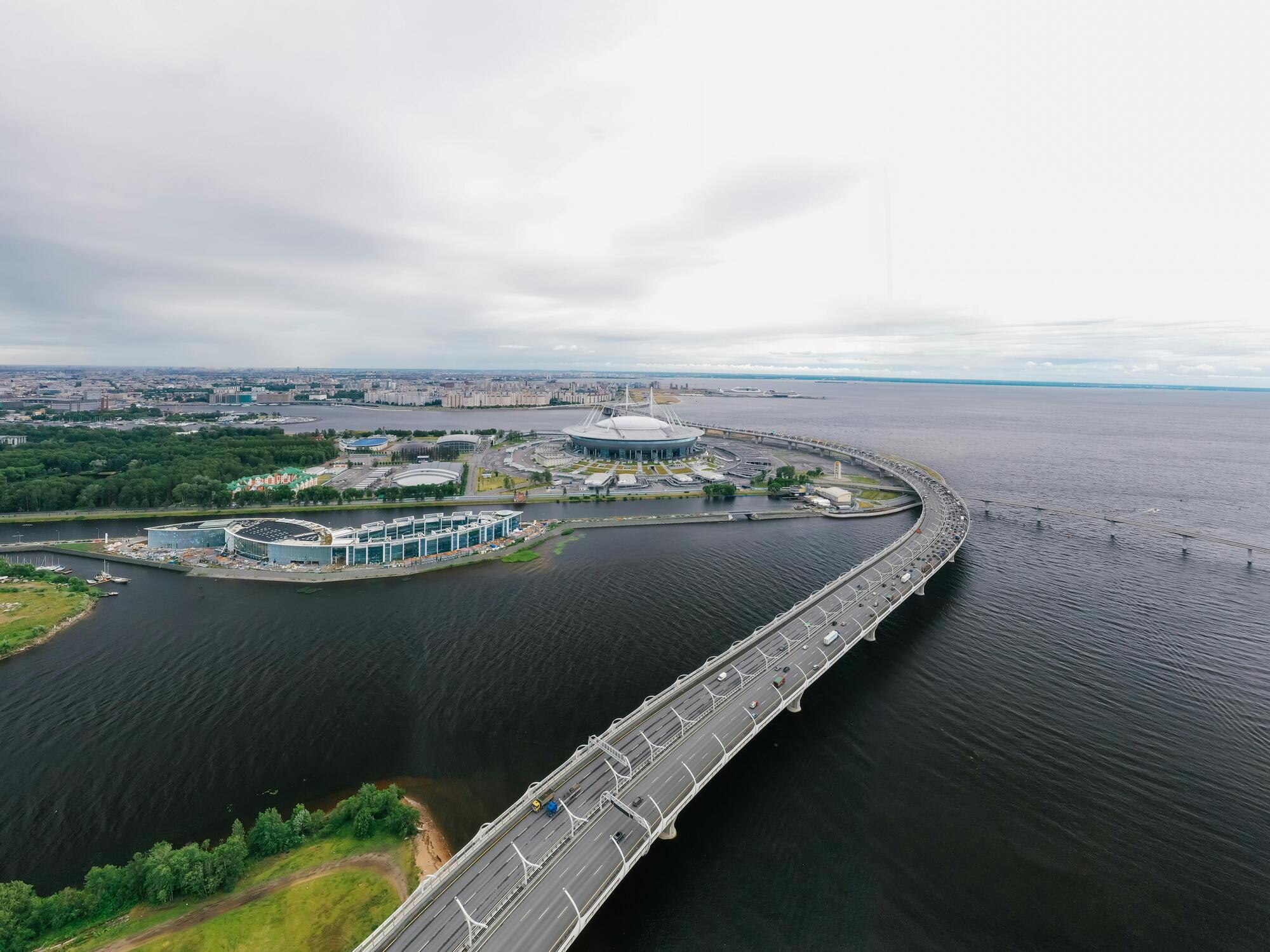 Этот мост длиной почти в километр перекинут через реку Большая Невка. Он соединяет парк 300-летия Петербурга и Приморский парк победы на Крестовском острове и обеспечивает легкий доступ к Газпром-Арене.